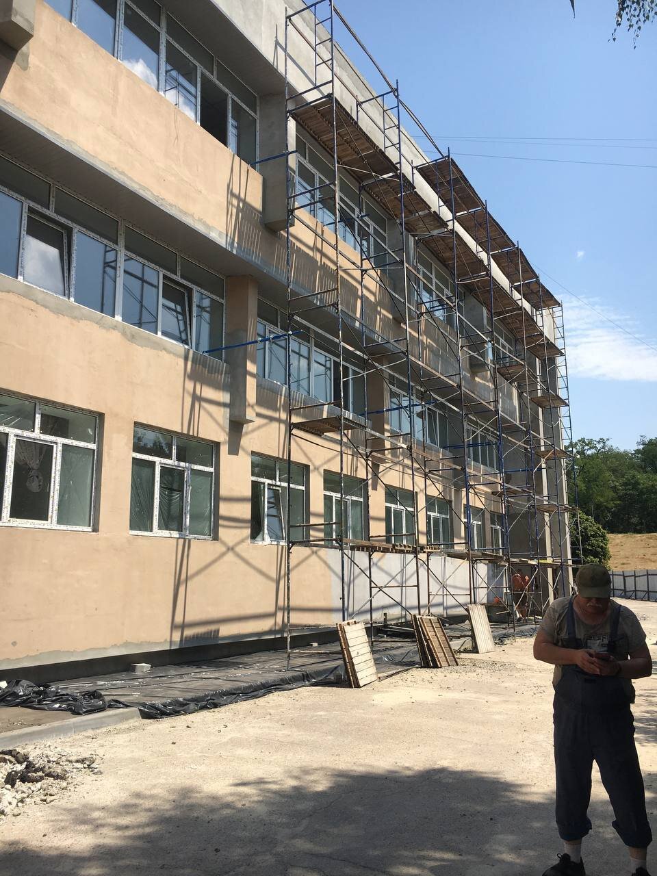 А саме: зовнішні роботи з утеплення фасаду та благоустрій території.