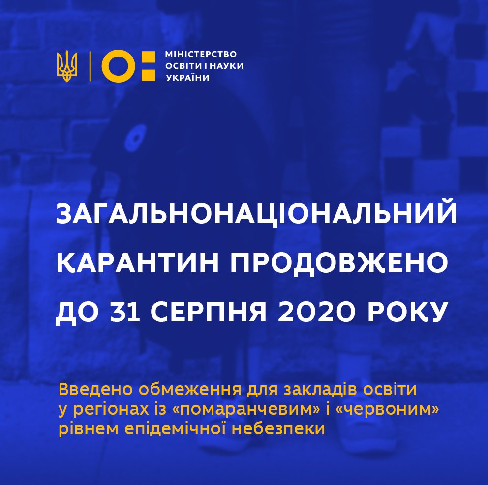 Загальнонаціональний карантин, встановлений через пандемію COVID-19, продовжено до 31 серпня 2020 року. В регіонах встановлюватиметься один з чотирьох рівнів епідемічної небезпеки, два з яких мають обмеження для діяльності закладів освіти. Відповідне рішення Уряд ухвалив 22 липня 2020 року.