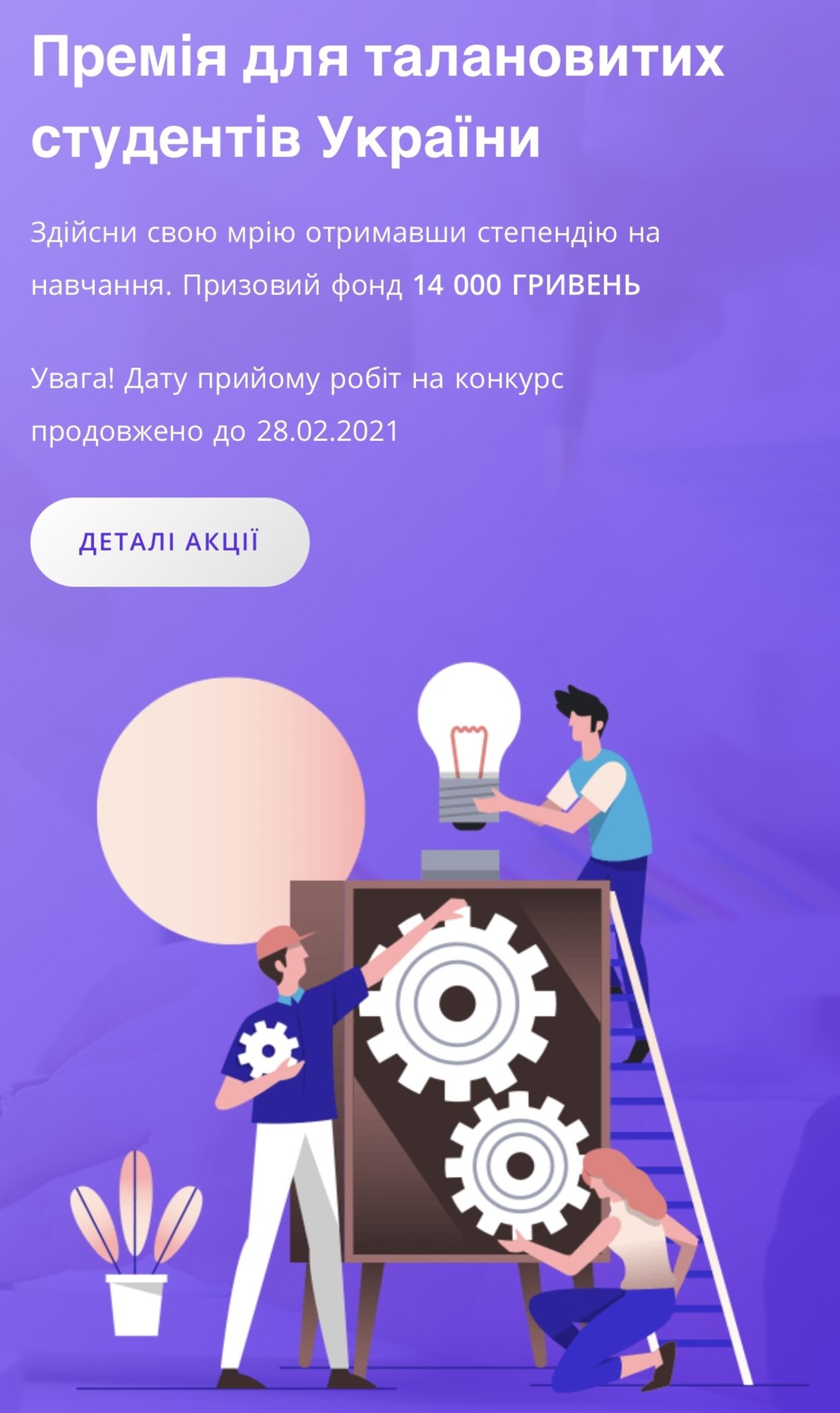 Громадська спілка «Український народний контроль» організовує конкурс для талановитої молоді України. Мета конкурсу-надання фінансової допомоги на навчання для студентів. Переможці отримають премію на навчання.Більш детально ознайомитись з умовами конкурсу можна на сторінці https://kredit.house/contest/ua/ , або за електронною адресою info.uncontrol@gmail.com.