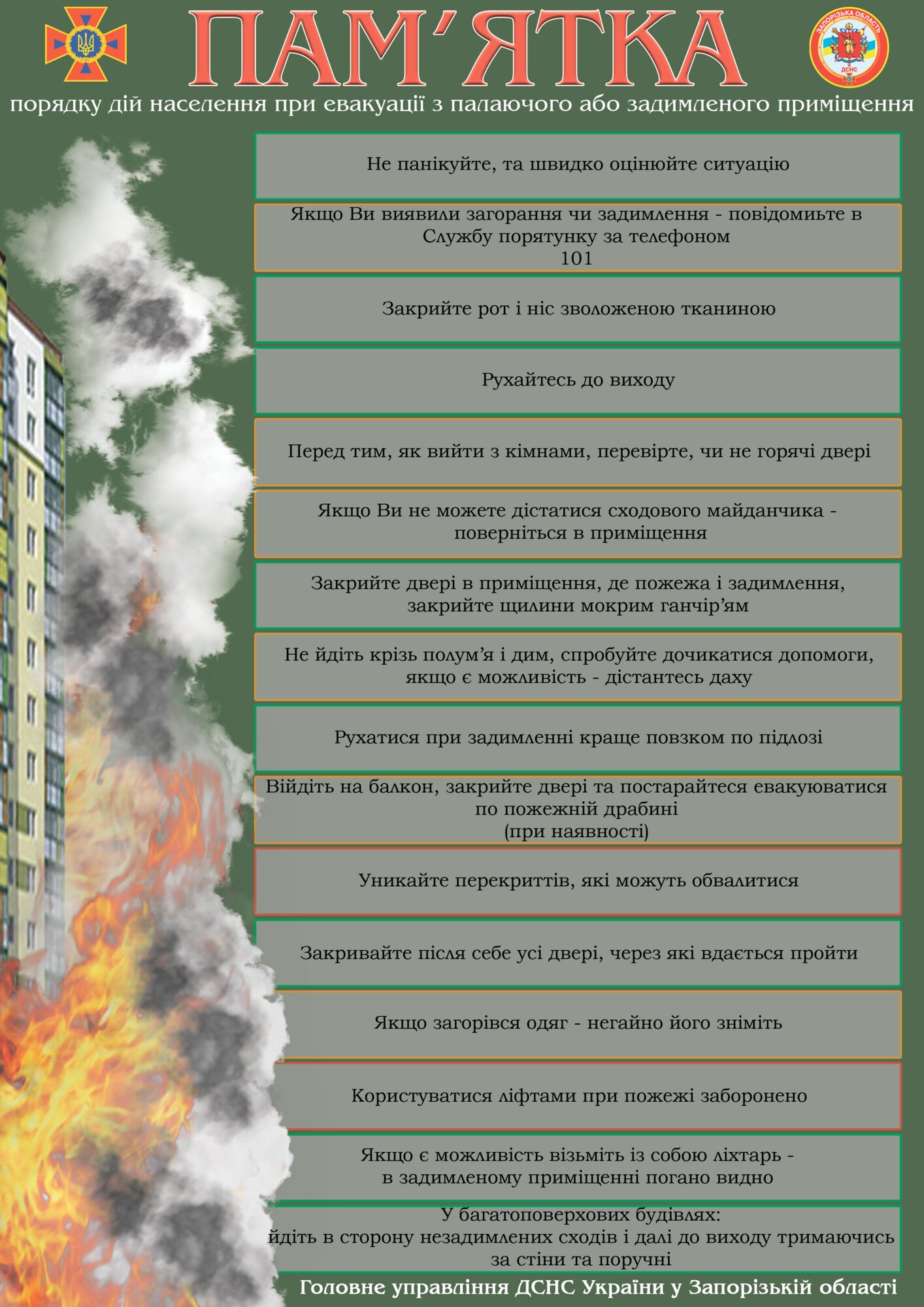 Головне управління Державної служби України з надзвичайних ситуацій у Запорізькій області підготувало пам’ятку, якщо Ви опинились у небезпечній ситуації.