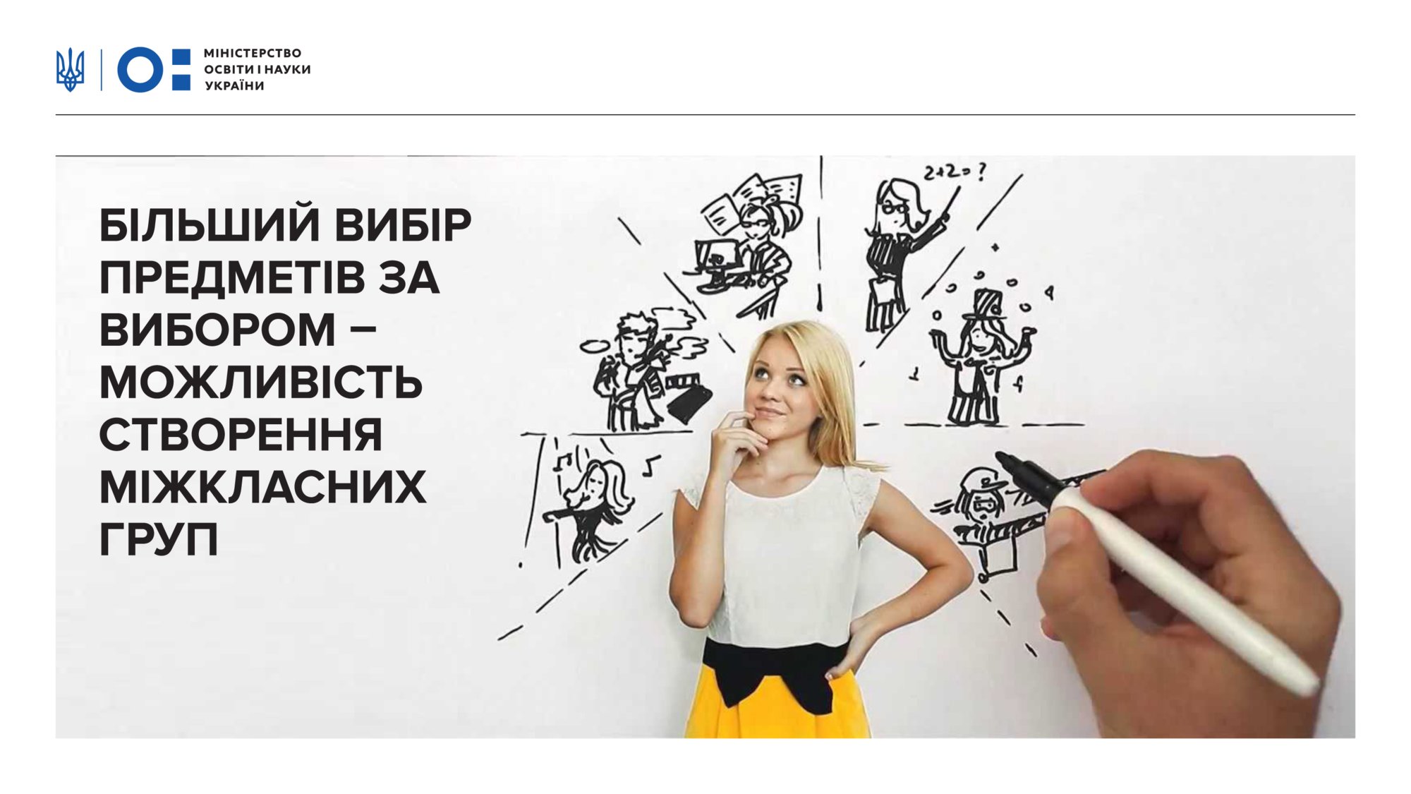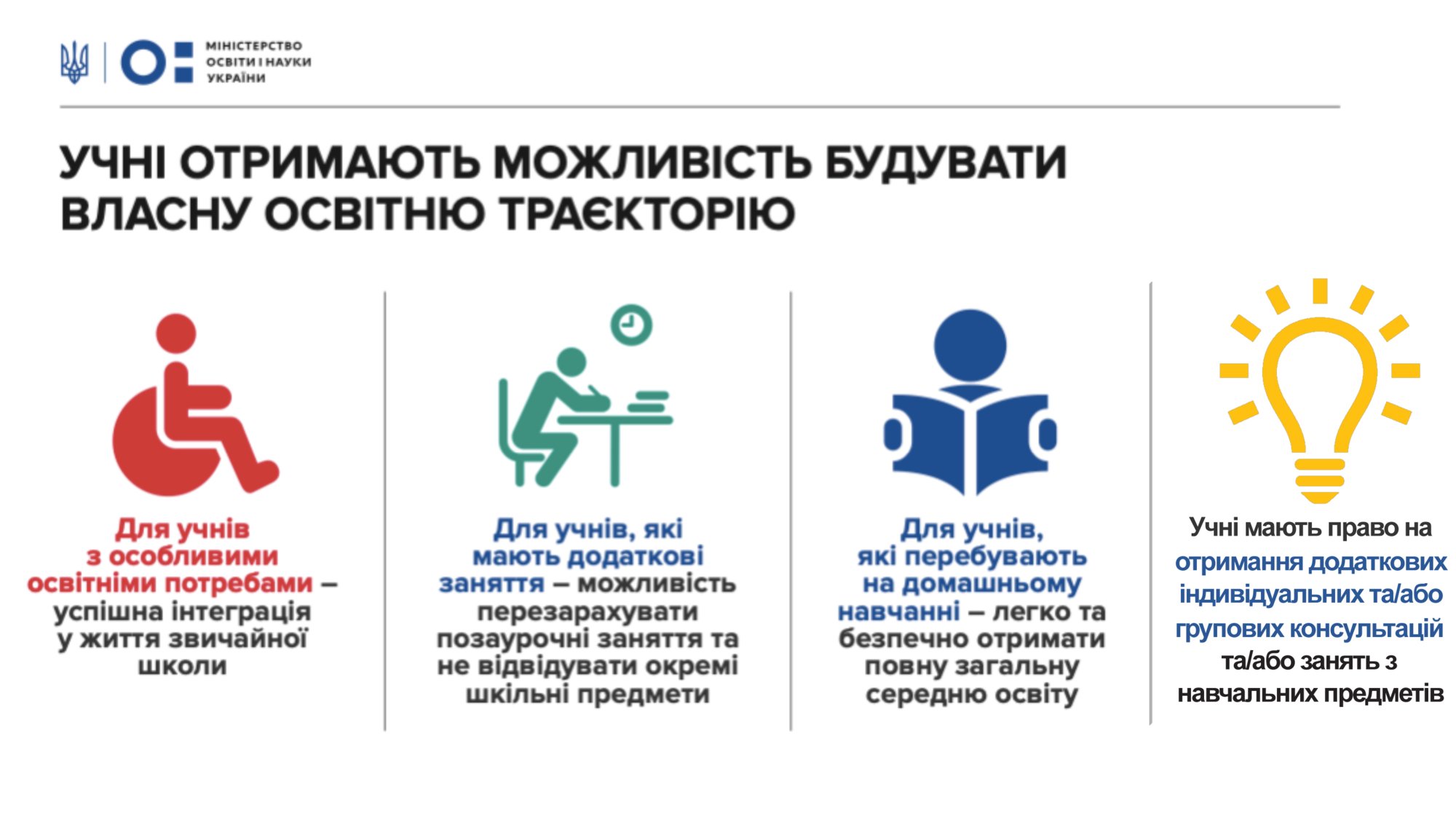Вибір предметів учнями. Закон запроваджує право учнів обирати курси, навчальні предмети (інтегровані курси).