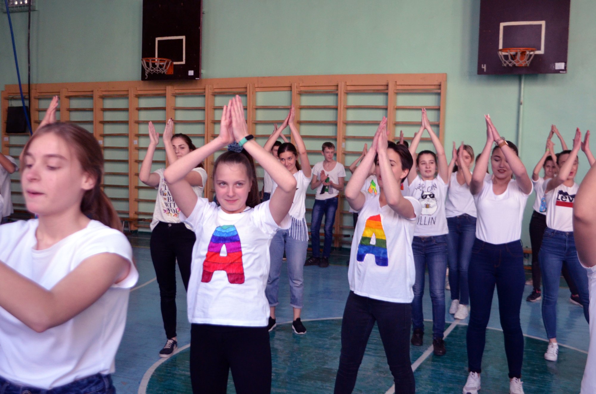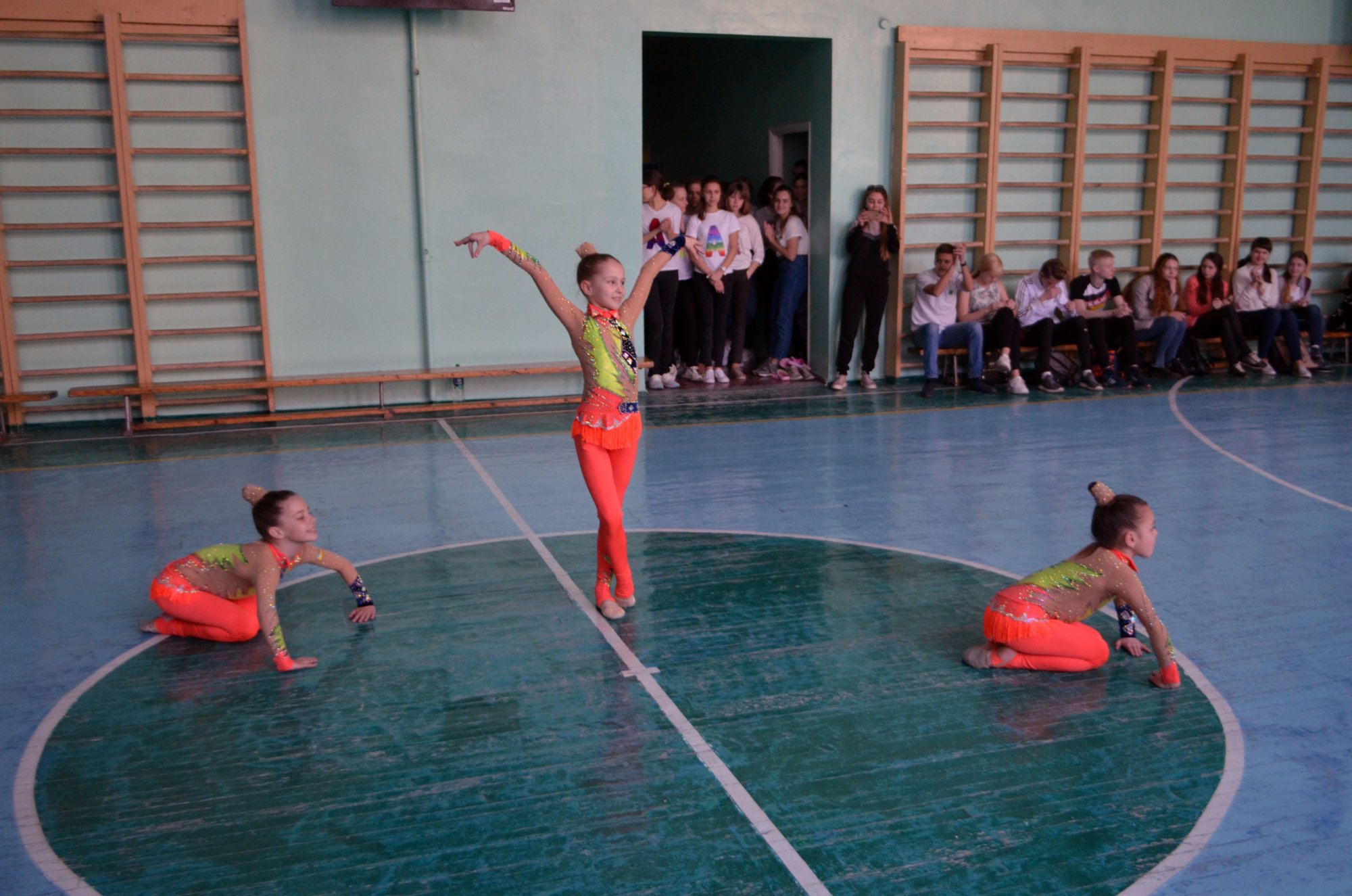 Вийшли дівчатка у яскравих гарних костюмах під музику виконали захоплюючу композицію. Команди учасників були у захваті від їх виступу. Тривало звучали оплески. На заключення церемонії учні 7а класу разом с учнями 10 б класу показали флешмоб.