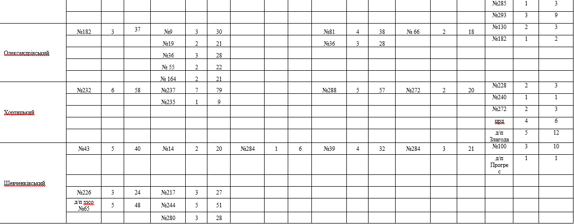 У 2023/2024 навчальному році у закладах дошкільної освіти м. Запоріжжя забезпечено функціонування 167 спеціальних груп для 1629 дітей з особливими освітніми потребами (порушення зору, мовлення, опорно-рухового апарату, інтелекту, із затримкою психічного розвитку).